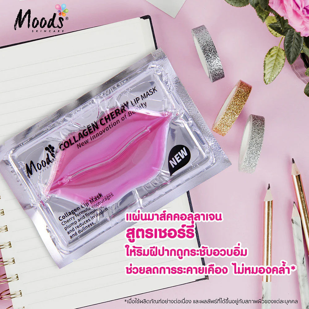 Moods Skin Care Collagen Cherry Lip Mask 8g Cherry Collagen Mask Sheet makes your lips look firmer and plumper, reduces irritation and prevents darkening.